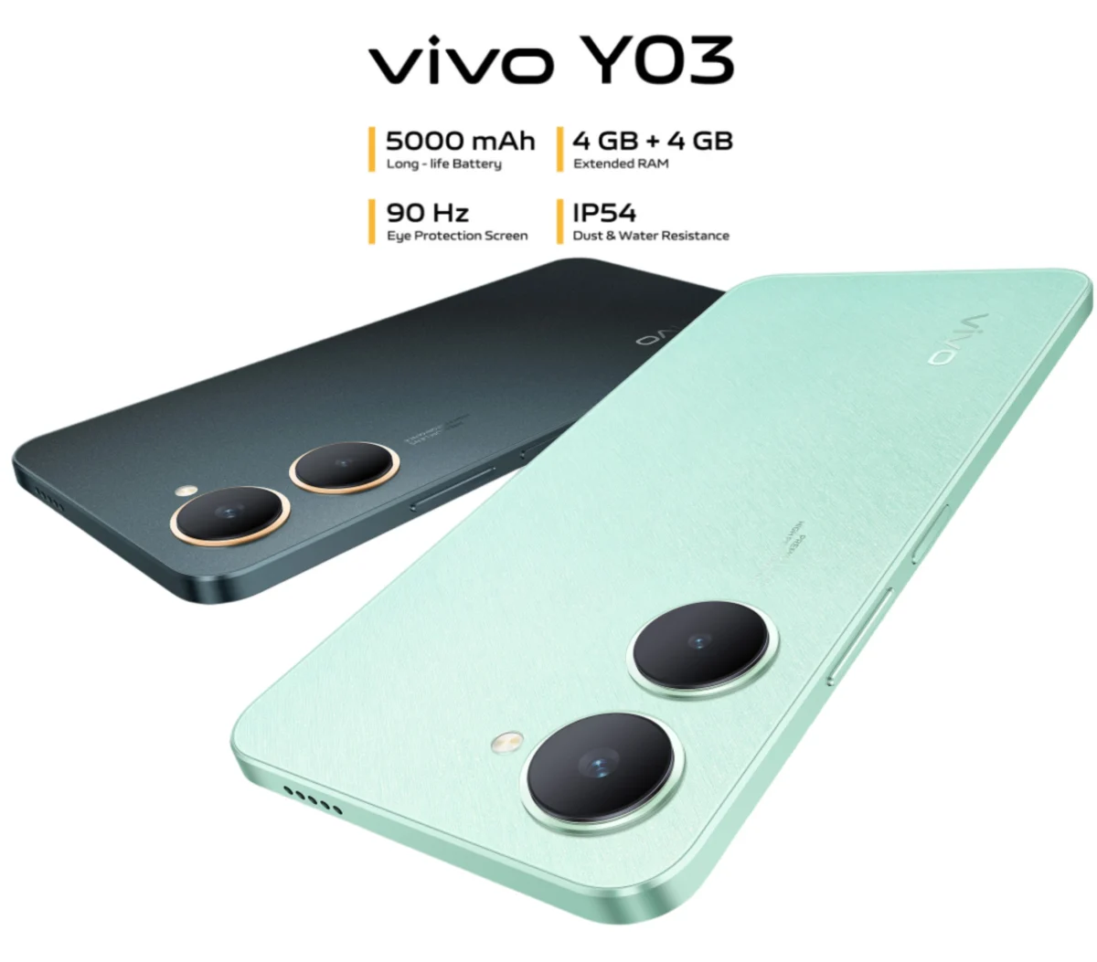 The Vivo Y03 has IP54 certification, protecting it from dust and light splashes. However, it’s not designed for full submersion in water.